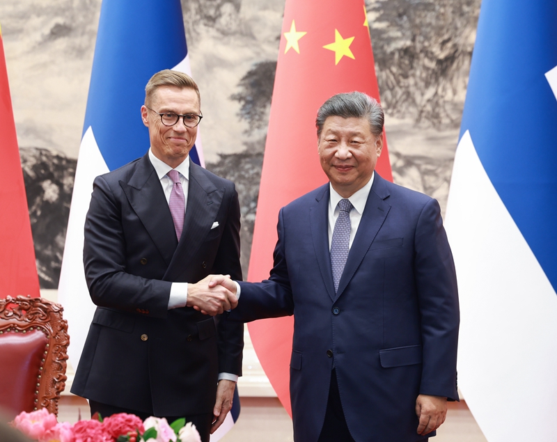 10月29日下午,國(guó)家主席習(xí)近平在北京人民大會(huì)堂同來華進(jìn)行國(guó)事訪問的芬蘭總統(tǒng)斯圖布舉行會(huì)談。會(huì)談后,兩國(guó)元首共同見証簽署多項(xiàng)雙邊合作文件。這是習(xí)近平同斯圖布握手。