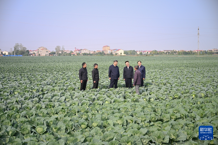 11月4日至6日,中共中央總書記、國家主席、中央軍委主席習(xí)近平在湖北考察。這是5日上午,習(xí)近平在咸寧市嘉魚縣潘家灣鎮(zhèn)十裡蔬菜長廊考察時(shí),同菜農(nóng)親切交流。