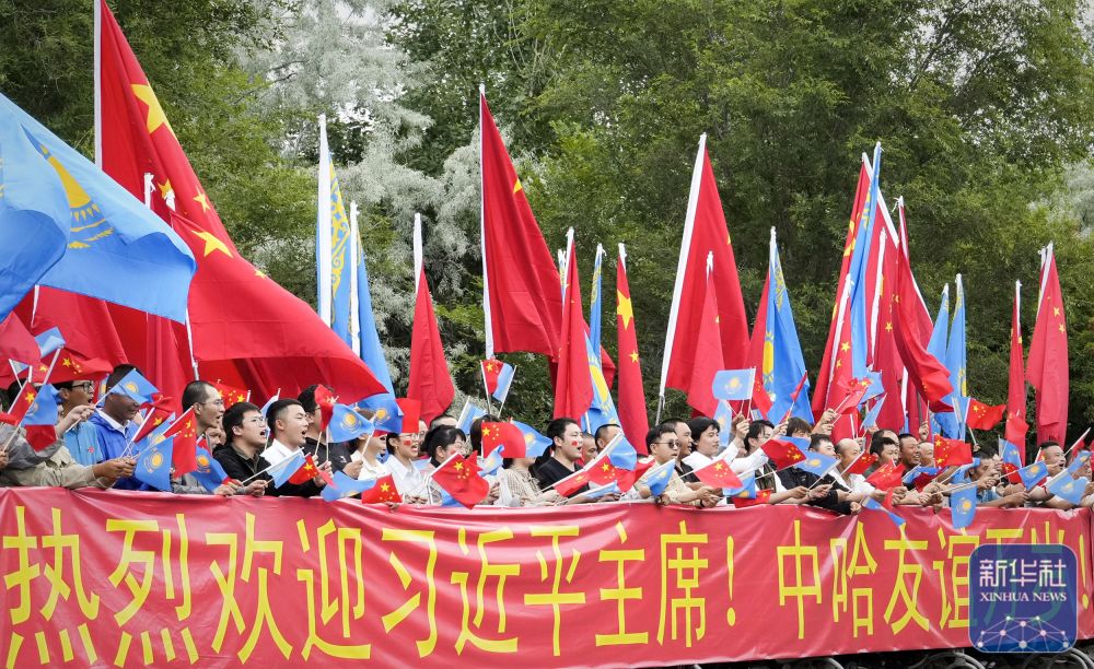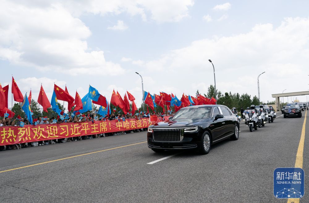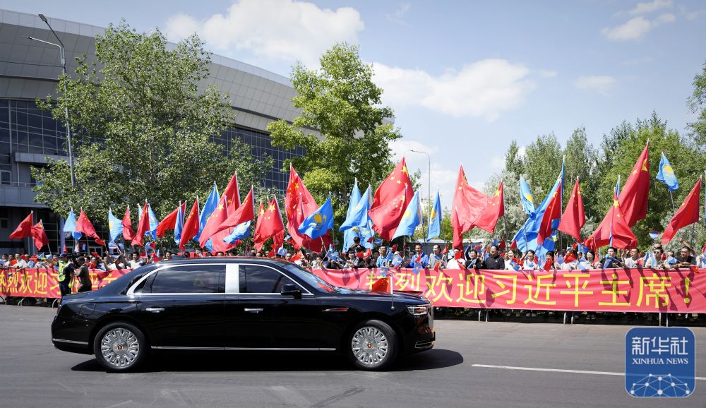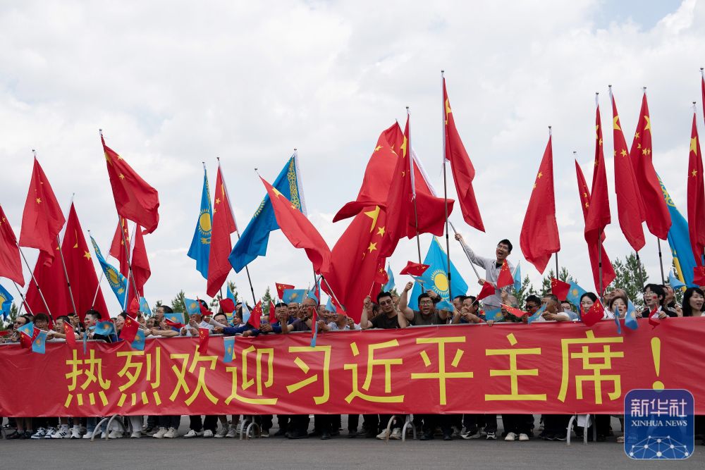 習近平乘車從機場赴下榻飯店途中,中資企業(yè)和留學生代表聚集在道路兩旁,手持“熱烈歡迎習近平主席!”“中哈友誼萬歲!”等紅色橫幅,熱烈歡迎習近平到訪。