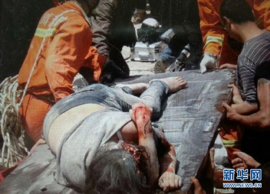 四川省雅安市消防支隊特勤中隊隊員將一名被地震廢墟掩埋的母親救出。據(jù)現(xiàn)場救援人員稱,被救出時,孩子在母親懷中;經(jīng)醫(yī)生檢查,母親有心跳,其孩子已經(jīng)去世。 【詳細】