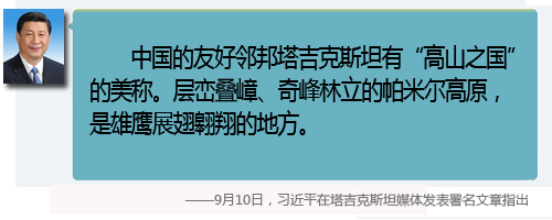 ——9月10日,習近平在塔吉克斯坦媒體發(fā)表署名文章指出