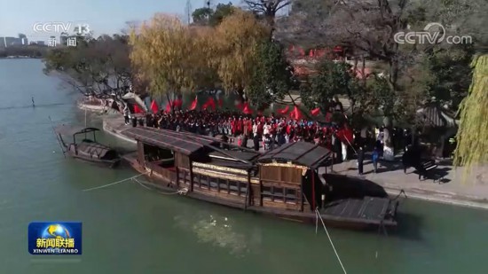 從上海到浙江嘉興不足百公里。100年前,因?yàn)榉ㄗ饨缪膊兜囊u擾,在上海秘密舉行的中共一大被迫轉(zhuǎn)移到嘉興南湖的游船上繼續(xù)進(jìn)行,完成了大會(huì)全部議程。2017年10月,習(xí)近平總書(shū)記等從上海來(lái)到嘉興,繼續(xù)追尋中共一大足跡。