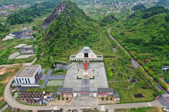 廣西灌陽縣湘江戰(zhàn)役新圩阻擊戰(zhàn)酒海井紅軍紀念園(無人機照片,4月27日攝)。新華社記者陸波岸攝