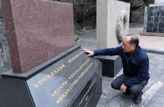 在廣西灌陽縣革命烈士陵園,灌陽縣黨史專家文東柏瞻仰無名烈士紀念碑(2月2日攝)。新華社記者陸波岸攝