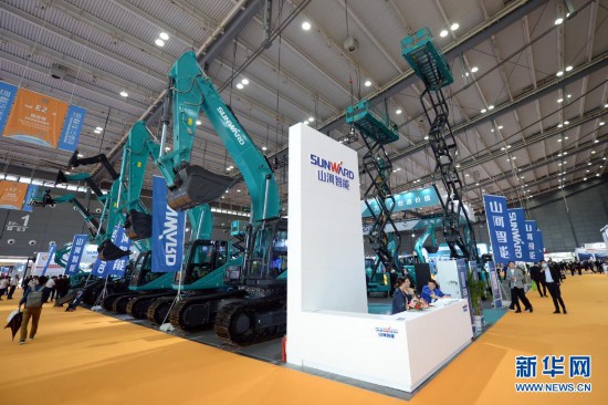 5月19日,觀眾在2021長(zhǎng)沙國(guó)際工程機(jī)械展覽會(huì)山河智能展區(qū)參觀。新華社記者陳振海攝
