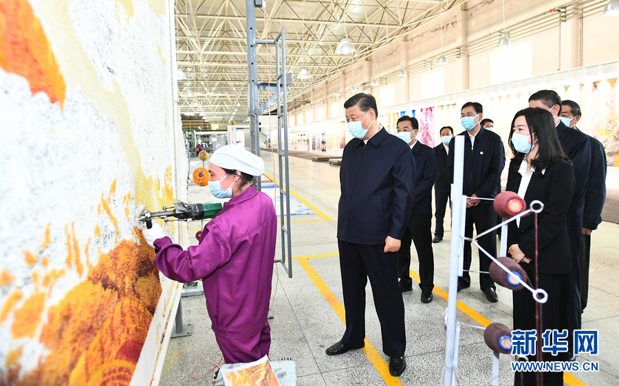 6月7日至9日,中共中央總書記、國家主席、中央軍委主席習近平在青海考察。這是7日下午,習近平在青海圣源地毯集團有限公司生產(chǎn)車間考察。新華社記者 謝環(huán)馳 攝
