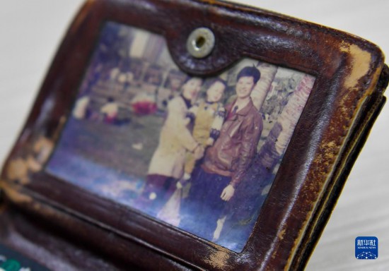 潘東升使用多年的錢包里面珍藏著多年前一家人的合影(2021年10月16日攝)。新華社發(fā)(福州市公安局供圖)