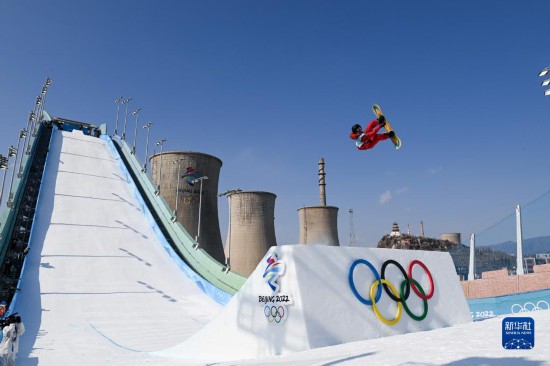 北京2022年冬奧會單板滑雪男子大跳臺決賽在北京首鋼滑雪大跳臺舉行。這是加拿大選手達(dá)西·夏普在比賽中(2月15日攝)。新華社記者 許暢 攝