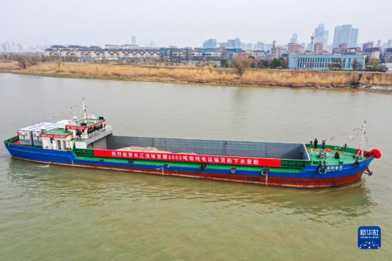 2月22日,長江流域首艘3000噸級純電動貨船“船聯(lián)1號”在南京首航。這艘船由燃油貨船改造而成,把電能作為整艘船的唯一能源,實(shí)現(xiàn)零排放、低噪音、無污染。