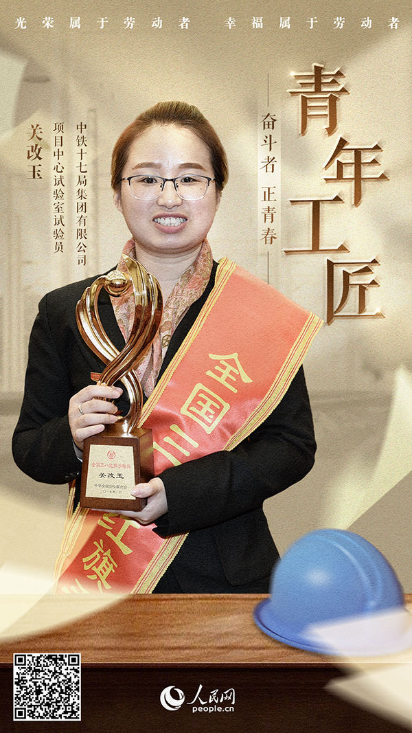 有這樣一群青年人,他們潛心在技藝層面不懈雕琢和追求,不畏艱苦,精益求精。在他們身上,工匠精神熠熠生輝。他們的行為為青年群體注入更多沉靜的力量。五一勞動(dòng)節(jié)與五四青年節(jié)將至,人民網(wǎng)推出《青年工匠》系列報(bào)道。本期為全國(guó)五一勞動(dòng)獎(jiǎng)?wù)芦@得者、中鐵十七局集團(tuán)有限公司項(xiàng)目中心試驗(yàn)室試驗(yàn)員關(guān)改玉。