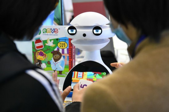 2021年底深圳高交會上展出的教育機器人。新華社記者 梁旭 攝