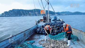 在海上養(yǎng)殖區(qū),漁民們熟練地開始起筏收籠,一籠籠的生蠔被撈起到船上,之后這些生蠔要運回島上,送進廠房,經(jīng)過自動化的清洗、按重量分揀等程序,被打包進保溫箱,發(fā)送全國各地。新品種三倍體生蠔個頭大,蠔肉肥厚,味道也鮮甜,因而市場很好。沈陽、上海,甚至西藏,都是這些美食的目的地。