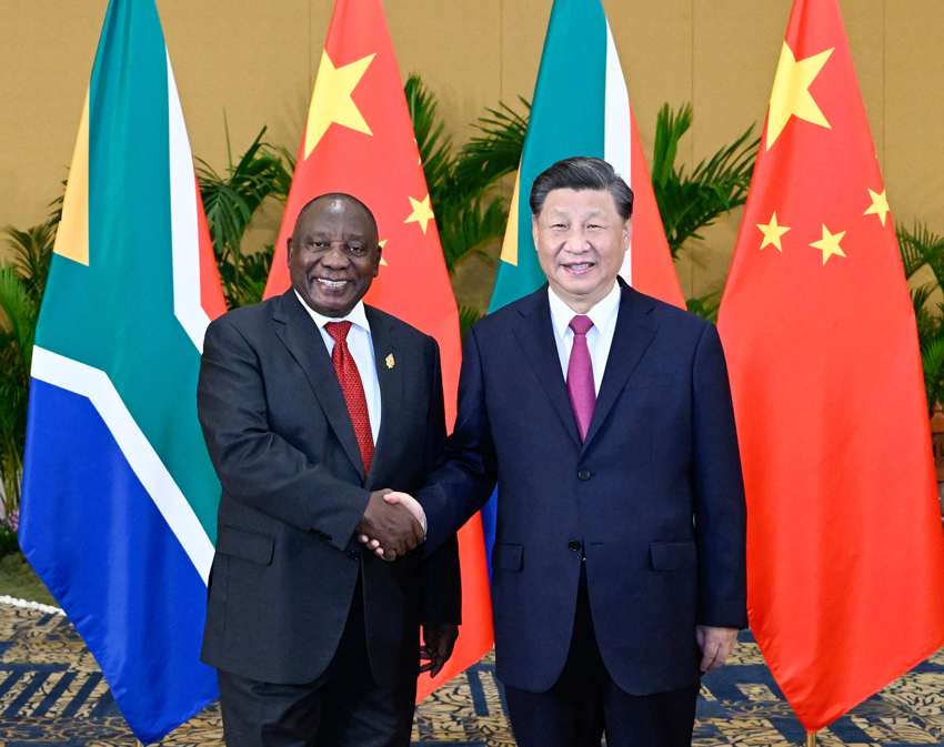 當(dāng)?shù)貢r(shí)間11月15日下午,國家主席習(xí)近平在印度尼西亞巴厘島會(huì)見南非總統(tǒng)拉馬福薩。新華社記者 申宏 攝