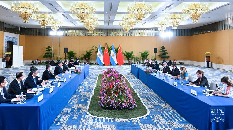 當(dāng)?shù)貢r間11月15日下午,國家主席習(xí)近平在印度尼西亞巴厘島會見阿根廷總統(tǒng)費爾南德斯。新華社記者 饒愛民 攝