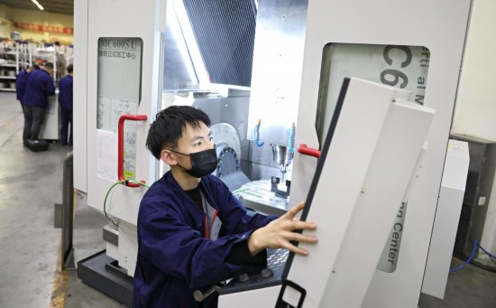 科德數(shù)控股份有限公司職工在車間調試設備。新華社記者姚劍鋒 攝