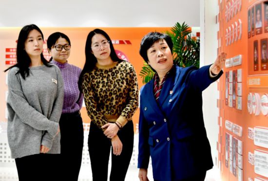 張軍萍和同事們一起商量社區(qū)工作。新華社記者黃安琪 攝