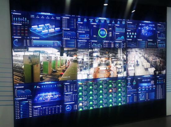 致景科技公司開發(fā)的“飛梭智紡”工業(yè)互聯(lián)網(wǎng)系統(tǒng),在上?梢钥吹酵獾丶彊C運行狀態(tài)和指標(biāo)參數(shù)。新華社記者龔雯 攝