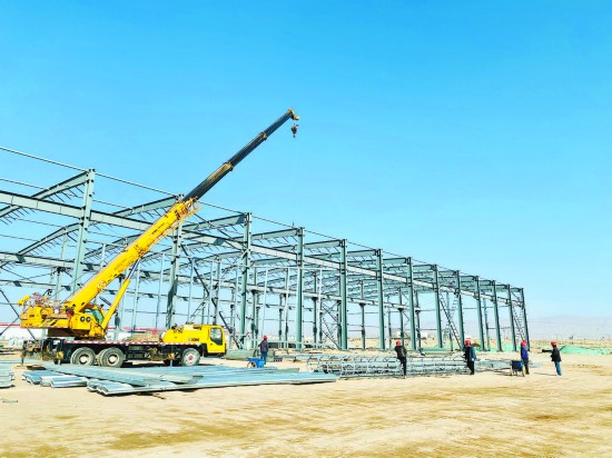 青海盛世中盈建筑工程有限公司的清潔能源制造業(yè)基地建設(shè)現(xiàn)場,工人們正在進行搭建企業(yè)廠房,為生產(chǎn)線上馬做足準(zhǔn)備。本報記者 欒雨嘉 攝
