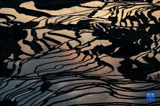 這是在云南省紅河哈尼族彝族自治州元陽(yáng)縣拍攝的哈尼梯田美景(2023年3月16日攝)。新華社記者 江文耀 攝