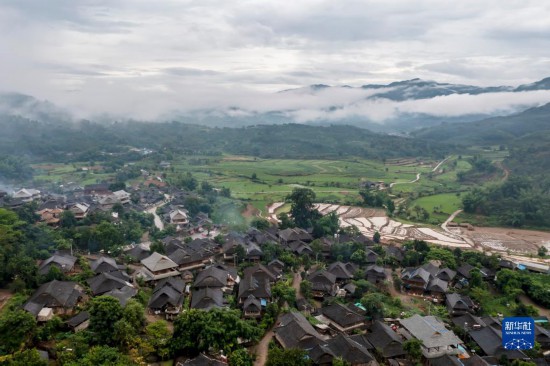 云南省普洱市瀾滄拉祜族自治縣老達(dá)保村夏日景色(2022年7月5日攝,無(wú)人機(jī)照片)。新華社記者 江文耀 攝
