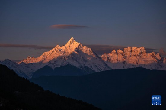 這是日出時(shí)分拍攝的云南省迪慶州梅里雪山一景(2023年3月10日攝)。新華社記者 胡超 攝