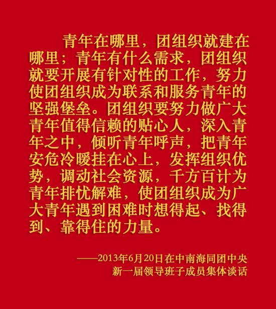 6月26日,中共中央總書記、國家主席、中央軍委主席習(xí)近平在中南海同團中央新一屆領(lǐng)導(dǎo)班子成員集體談話并發(fā)表重要講話。