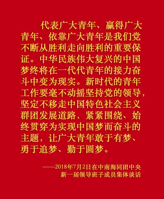 在新的征程上,如何更好把青年團結(jié)起來、組織起來、動員起來,為實現(xiàn)第二個百年奮斗目標、實現(xiàn)中華民族偉大復(fù)興的中國夢而奮斗,是新時代中國青年運動和青年工作必須回答的重大課題。