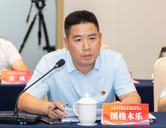 圖為內(nèi)蒙古自治區(qū)阿魯科爾沁旗委員會(huì)組織部副部長(zhǎng)圖格木樂(lè)在新時(shí)代基層黨建創(chuàng)新研討行圓桌論壇上發(fā)言。