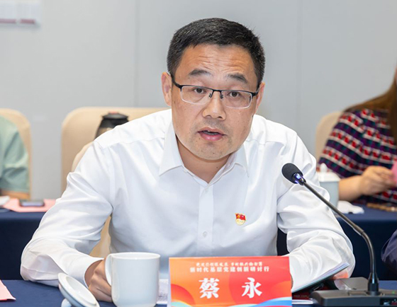 圖為江蘇省宿遷市泗陽縣委組織部副部長、兩新工委書記、老干部局局長蔡永在新時代基層黨建創(chuàng)新研討行圓桌論壇上發(fā)言。