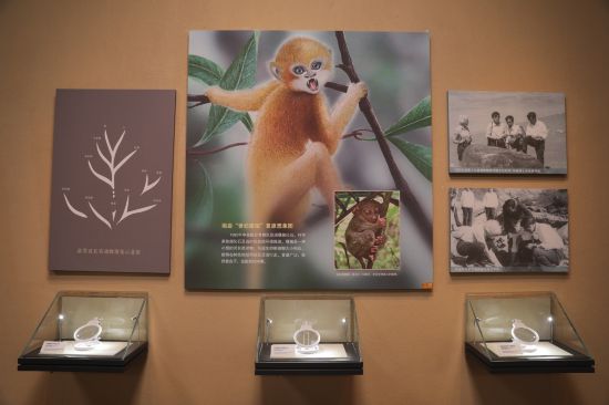 運(yùn)城博物館展出的垣曲“世紀(jì)曙猿”化石。 人民網(wǎng)記者 王帆攝