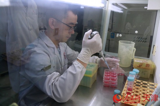 程曲漢進行細(xì)胞培養(yǎng)與傳代實驗。 人民網(wǎng)記者 張靜淇攝