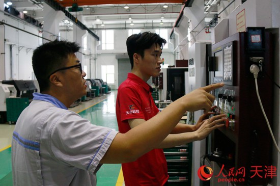 走進中國(天津)職業(yè)技能公共實訓(xùn)中心的實訓(xùn)車間,高端數(shù)控機床整齊排列,嗡嗡響動,現(xiàn)代制造技術(shù)教研室主任王傳龍一邊指導(dǎo)學(xué)員操作機床,一邊和學(xué)員一起觀察加工過程,加工器件在機床的打磨下逐漸成型。