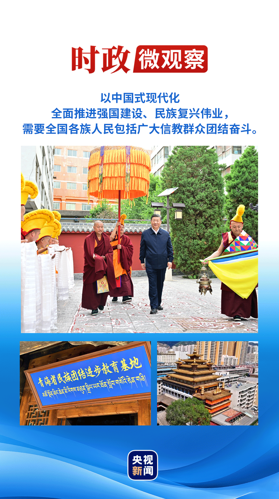 此次在青?疾鞎r(shí),總書(shū)記重申,希望青海藏傳佛教界弘揚(yáng)愛(ài)國(guó)愛(ài)教優(yōu)良傳統(tǒng),促進(jìn)宗教和順、社會(huì)和諧、民族和睦,在中國(guó)式現(xiàn)代化進(jìn)程中發(fā)揮積極作用。