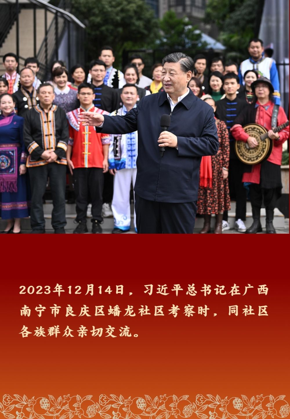 以習(xí)近平同志為核心的黨中央高度重視民族工作,十分關(guān)心少數(shù)民族群眾。習(xí)近平總書記多次深入民族地區(qū)考察調(diào)研,同各族群眾親切交流,勉勵(lì)大家鑄牢中華民族共同體意識(shí),像石榴籽那樣緊緊抱在一起。