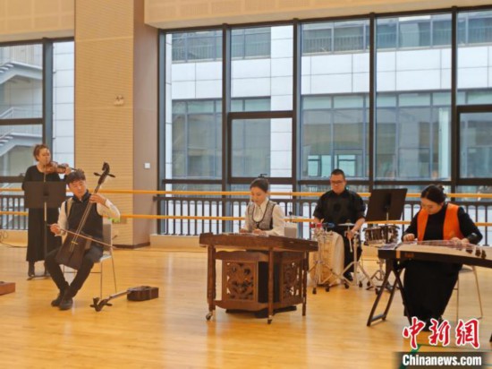 圖為樂器合奏表演,小提琴與蒙古族傳統(tǒng)樂器同臺。李騰飛 攝
