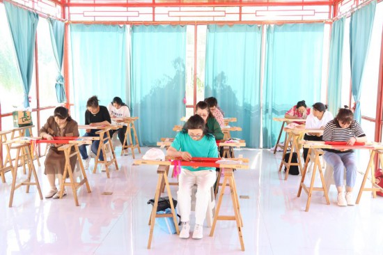 各民族繡工們一針一線展示技藝。勿日汗 攝
