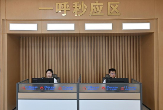 在“一呼秒應(yīng)區(qū)”,記者看到兩名工作人員戴著耳機(jī),緊盯屏幕!巴ㄟ^遠(yuǎn)程虛擬窗口喚起服務(wù),提供線上專員服務(wù)解決急事!惫ぷ魅藛T說,企業(yè)在線上有任何辦事需求、服務(wù)需求,都可以通過平臺呼叫。
