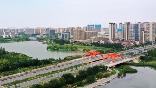 這是2022年8月10日拍攝的蘭州新區(qū)城市面貌(無(wú)人機(jī)照片)。新華社記者 陳斌 攝