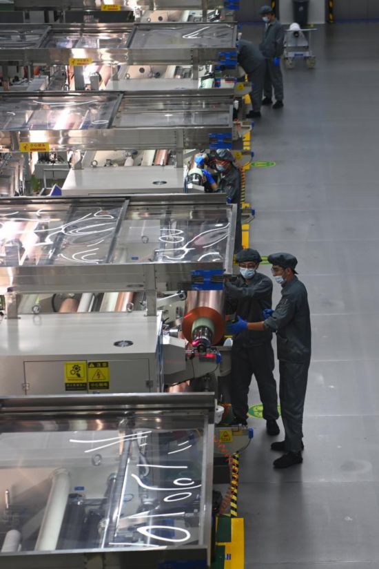 7月25日,在位于蘭州新區(qū)的甘肅德福新材料有限公司,工人在銅箔生產(chǎn)線上作業(yè)。新華社記者 范培珅 攝