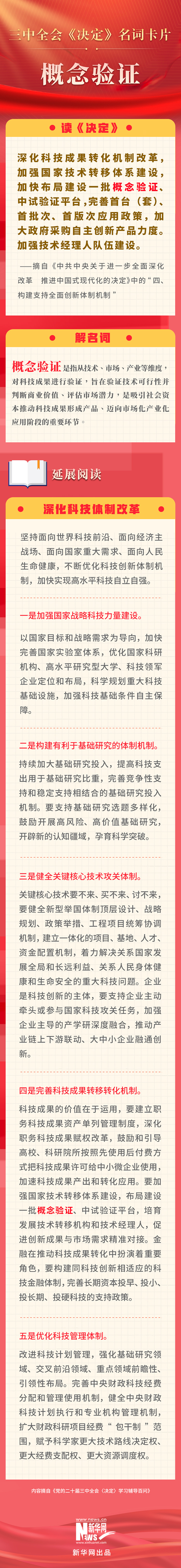 黨的二十屆三中全會(huì)審議通過了《中共中央關(guān)于進(jìn)一步全面深化改革、推進(jìn)中國(guó)式現(xiàn)代化的決定》。新華網(wǎng)依據(jù)《黨的二十屆三中全會(huì)〈決定〉學(xué)習(xí)輔導(dǎo)百問》,制作三中全會(huì)《決定》系列名詞卡片,和大家一起來(lái)深入學(xué)習(xí)領(lǐng)會(huì)二十屆三中全會(huì)精神。本期名詞是“概念驗(yàn)證”。