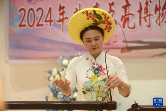 8月24日,在廣西東興京族博物館,京族獨(dú)弦琴藝術(shù)傳承人趙霞在彈奏獨(dú)弦琴。新華社記者 陸波岸 攝