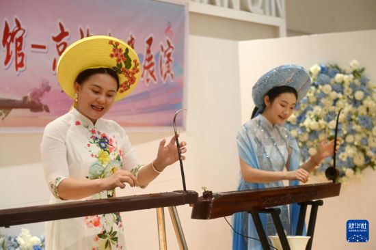 8月24日,在廣西東興京族博物館,京族獨(dú)弦琴藝術(shù)傳承人趙霞(左)和阮媛媛在彈奏獨(dú)弦琴。新華社記者 陸波岸 攝