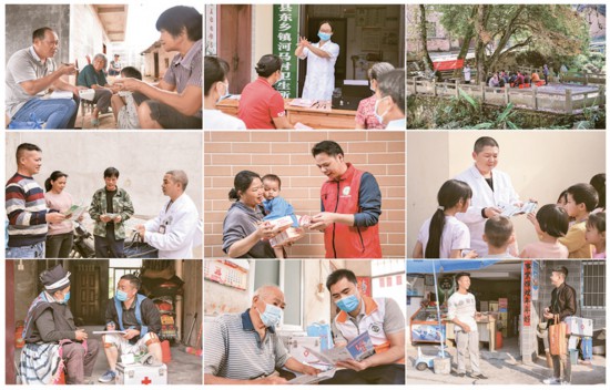 2024年8月19日是第七個(gè)中國(guó)醫(yī)師節(jié)。讓更多群眾能在“家門口”看病,是深化醫(yī)藥衛(wèi)生體制改革的重要目標(biāo)。最新數(shù)據(jù)顯示,我國(guó)有495萬(wàn)名基層衛(wèi)生健康工作者,其中有110萬(wàn)名鄉(xiāng)村醫(yī)生,發(fā)揮著“健康守門人”的重要作用。這張拼版照片顯示的是鄉(xiāng)村醫(yī)生們?cè)诔鲈\中開展健康咨詢及知識(shí)宣傳工作。 新華社記者 曹祎銘/攝