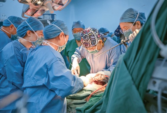圖為2024年4月28日,北京協(xié)和醫(yī)院婦產(chǎn)科、麻醉科等為一位罕見的孕15周患者完成“盆腔巨大靜脈內(nèi)平滑肌瘤切除、累及心臟的下腔靜脈及雙側(cè)髂靜脈平滑肌瘤取出術(shù)”。術(shù)后,患者繼續(xù)妊娠,孕期平順。 國(guó)家衛(wèi)生健康委供圖