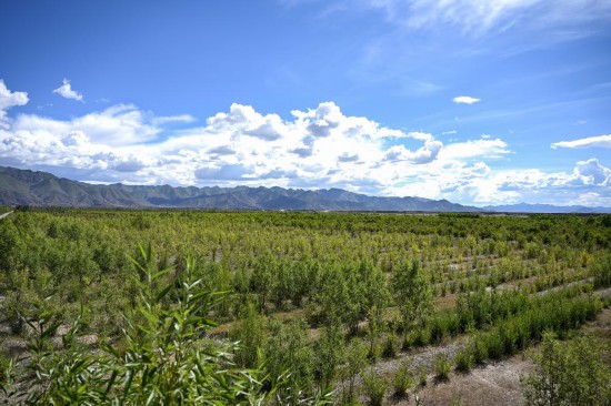 2024年9月1日,在雅江北岸南木林生態(tài)示范區(qū),郁郁蔥蔥的林木和湛藍(lán)的天空相映成景。新華社記者 孫瑞博 攝