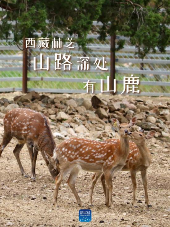 在工布江達(dá)縣高原生態(tài)養(yǎng)鹿基地,幾只梅花鹿在玩鬧嬉戲。新華社記者 沈曉朦 攝