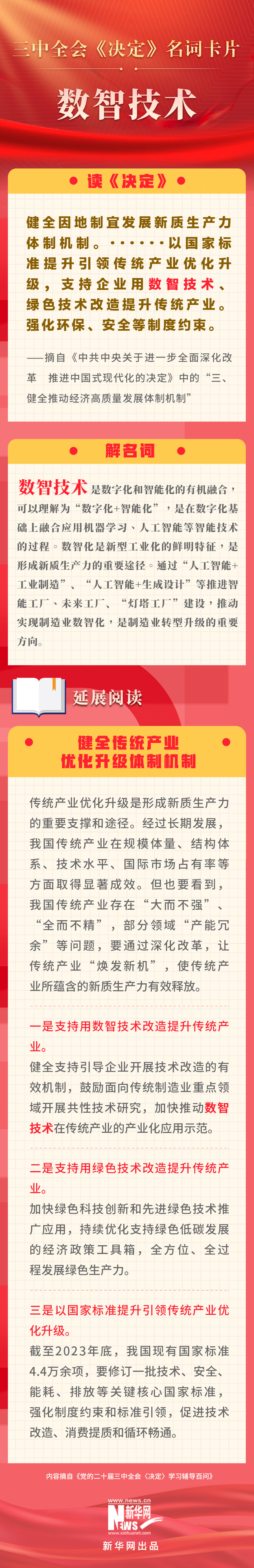 黨的二十屆三中全會審議通過了《中共中央關(guān)于進一步全面深化改革、推進中國式現(xiàn)代化的決定》。新華網(wǎng)依據(jù)《黨的二十屆三中全會〈決定〉學習輔導百問》,制作三中全會《決定》系列名詞卡片,和大家一起來深入學習領(lǐng)會二十屆三中全會精神。本期名詞是“數(shù)智技術(shù)”。