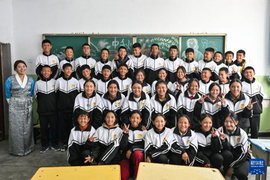 六年級(1)班的扎西旺姆跳得活力十足,她不僅是學校的升旗手,還是民族團結(jié)小講解員。“從去年8月起,每周一都是我升旗,每當看到國旗冉冉升起,心里都很激動。”扎西旺姆說,“一些低年級的同學,雖然個子還沒有升旗臺高,但都爭著當旗手。親手將五星紅旗升起,是件無比自豪的事!