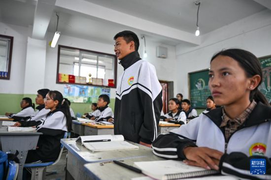 在西藏阿里地區(qū)札達縣九年一貫制學校,初三(2)班學生起立回答老師次仁曲加的問題(9月10日攝)。新華社記者 孫瑞博 攝