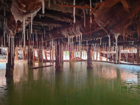 鹽田由多根木柱搭架。新華社記者侯韶婧 攝